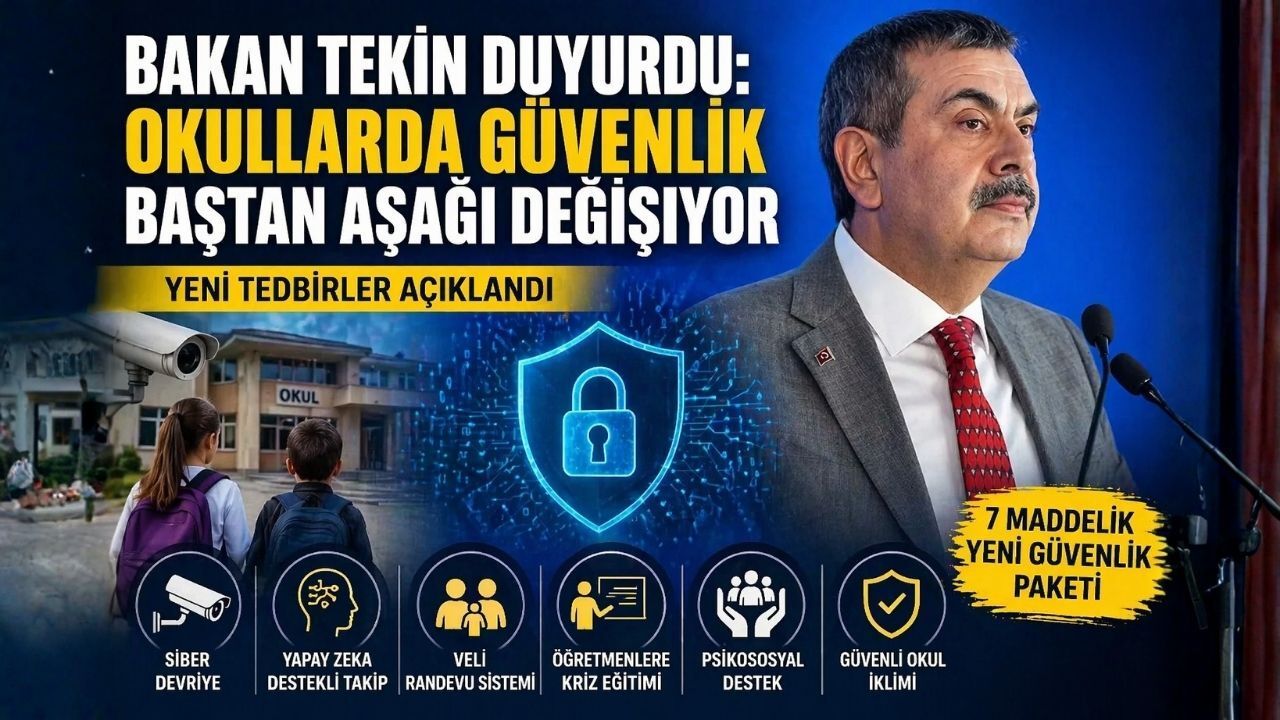 Milli Eğitim Bakanı Yusuf Tekin, okullarda güvenlik ve eğitim ortamını güçlendirmeye yönelik yeni tedbirleri açıkladı. Fiziki önlemlerin yanı sıra dijital risklere karşı da kapsamlı bir çalışma başlatıldığı belirtildi.