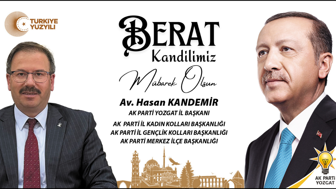 AK Parti Yozgat İl Başkanlığı, mesajının son bölümünde iyi dileklerini paylaştı. Başta Yozgatlı hemşehriler olmak üzere Türkiye’nin dört bir yanındaki ve tüm dünyadaki Müslümanların Berat Kandili’ni tebrik etti.