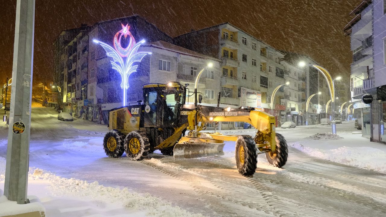 Yozgat'ın Akdağmadeni ilçesinde gece boyunca etkili olan kar yağışı, belediye ekiplerini seferber etti. Kar temizleme çalışmaları, ana yolların trafiğe açık kalması için aralıksız sürdürülüyor.