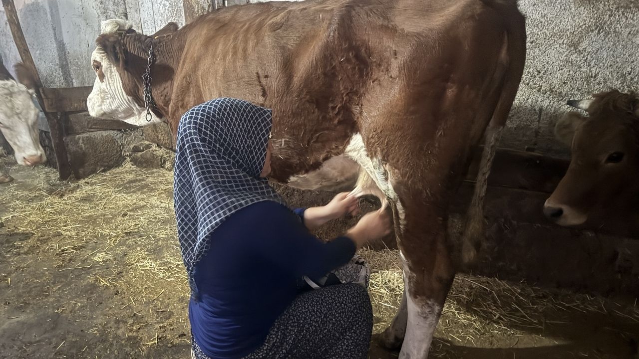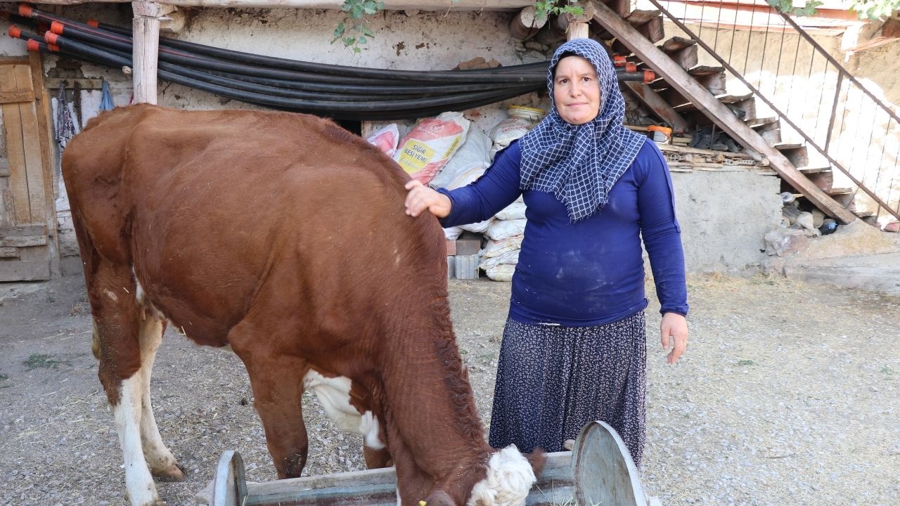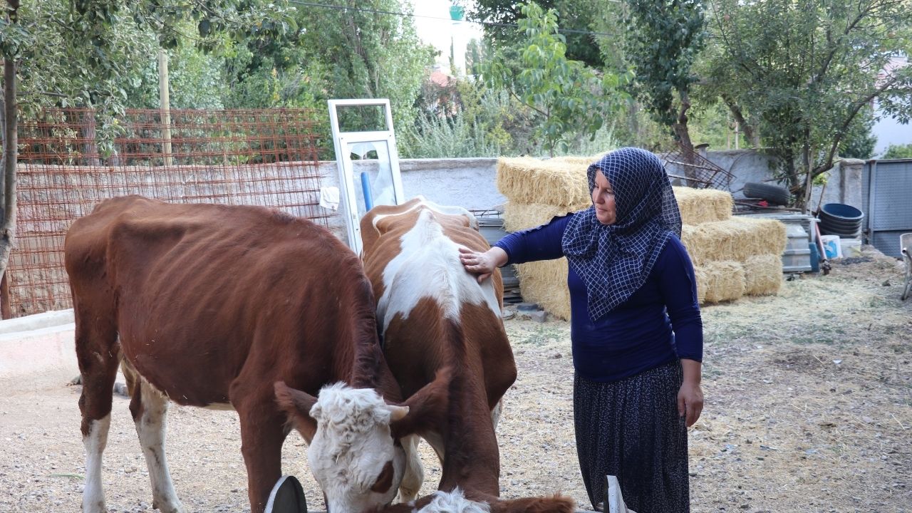 Eşinin traktör almak için ineklerini satmasının ardından devletin sunduğu imkanla 2 gebe düve alan Doğru, hayvan sayısını artırmayı hedefliyor.