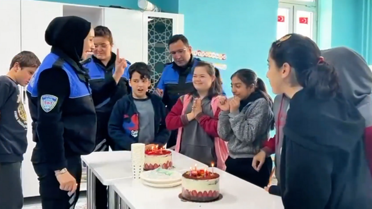 Ziyaretin en keyifli anlarından biri, öğrencilerle birlikte yapılan yaş pasta kesimi oldu. Polis memurları ve öğrenciler birlikte pasta keserek bu özel günü kutladı.