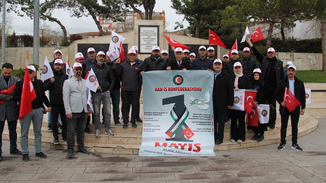 Yozgat HAK-İŞ Konfederasyonu, 1 Mayıs Emek ve Dayanışma Günü'nü Yozgat'ta coşkuyla kutladı. HAK-İŞ Konfederasyonu Yozgat İl Başkanı ve Hizmet-İş Sendikası Yozgat Şube Başkanı Ferman Zararsız, sendika üyeleriyle birlikte Cumhuriyet Meydanı'nda bir basın açıklaması yaparak emeğin kutsallığını vurguladı, emekçilerin sorunlarını ve taleplerini kamuoyuyla paylaştı.