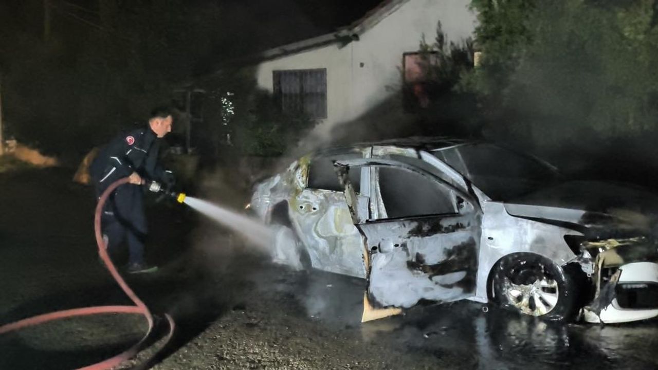 Antalya'da sokak üzerinde park halindeki araç çıkan yangında küle döndü.
