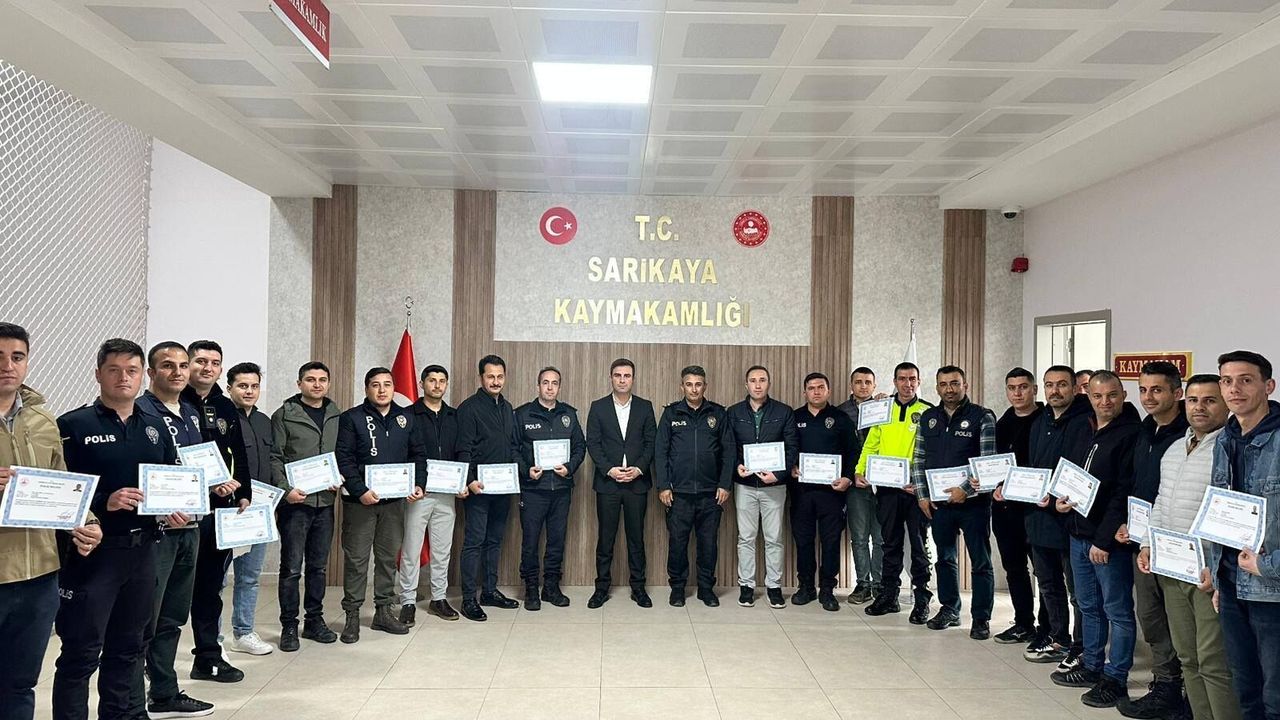 Sarıkaya Kaymakamı Mubin Demirkıran, ilçede kadına yönelik şiddetle mücadele kapsamında yürütülen çalışmalarda gösterdikleri başarılı hizmetlerden dolayı İlçe Emniyet Müdürlüğü ve İlçe Jandarma Komutanlığı personelini makamında kabul etti.