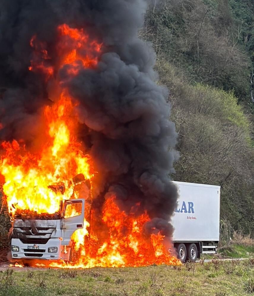 Olay, Karadeniz Sahil Yolu Merdivenli köyü mevkiinde meydana geldi. İ.Ş. idaresindeki 31 KMD 81 plakalı tır, henüz belirlenemeyen bir nedenle arıza yaptı. Araçtan çıkan dumanları fark eden sürücü, tırı yol kenarına park ederek aşağı indi. Ancak kısa süre sonra motor bölümünden yükselen alevler hızla yayıldı.