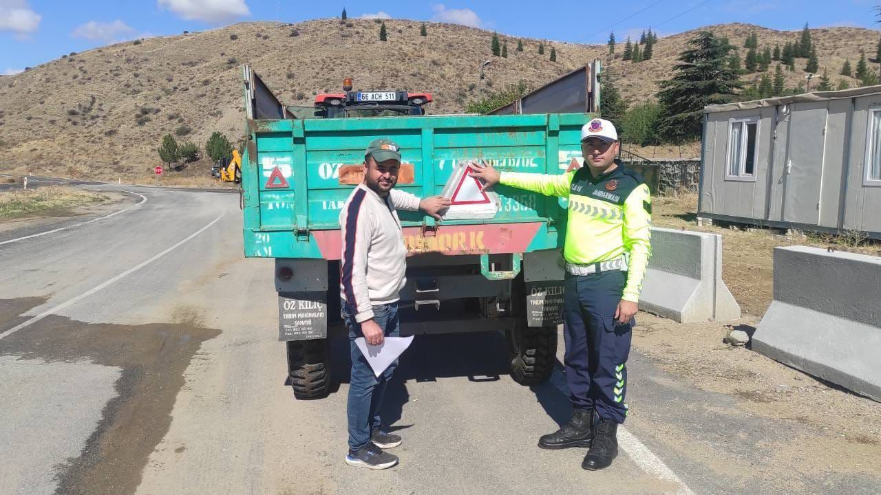 Şefaatli Jandarma ekipleri, bilgilendirme faaliyetleri kapsamında traktör sürücülerine trafik güvenliği broşürleri dağıttı. Broşürlerde, güvenli traktör kullanımı, ekipman kontrolü ve görünürlük artırıcı önlemler detaylı şekilde yer aldı.