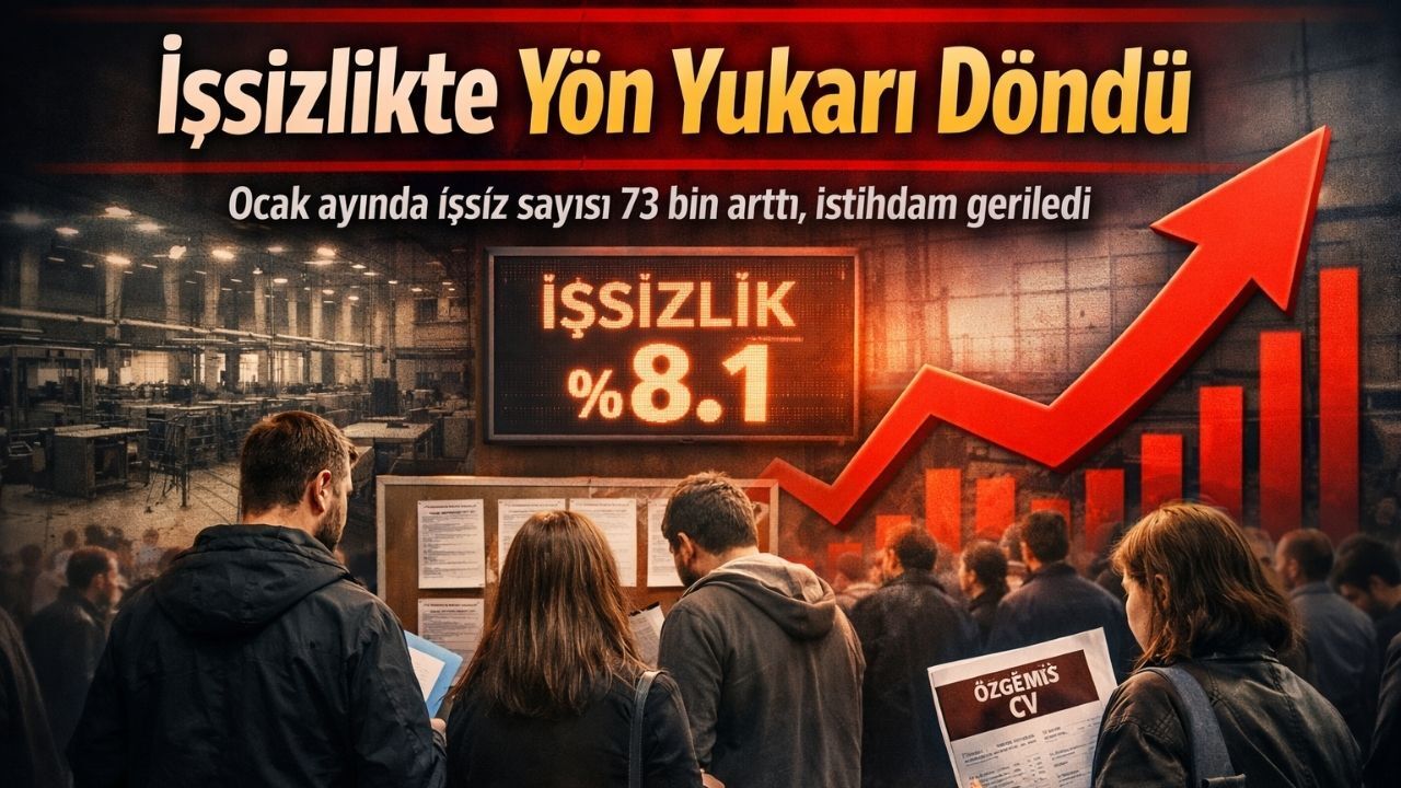 Türkiye genelinde 15 yaş ve üzerindeki işsiz sayısı, ocak ayında bir önceki aya göre 73 bin kişi artarak 2 milyon 819 bin oldu. Aynı dönemde işsizlik oranı 0,3 puanlık artışla yüzde 8,1 seviyesine yükseldi.