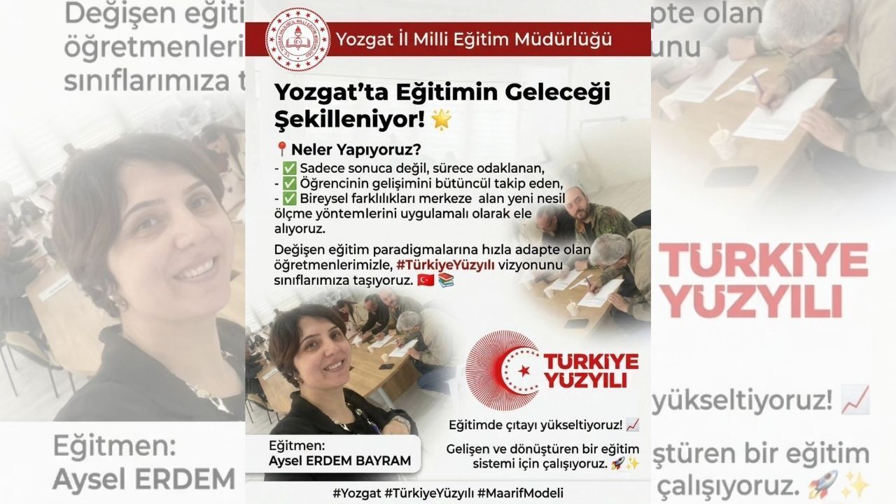 Yozgat İl Milli Eğitim Müdürlüğü koordinasyonunda düzenlenen Türkiye Yüzyılı Maarif Modeli seminerleri devam ediyor. Ölçme Değerlendirme Merkezi (ÖDM) tarafından yürütülen programda, öğretmenlere yeni nesil ölçme değerlendirme yöntemleri üzerine eğitim veriliyor.