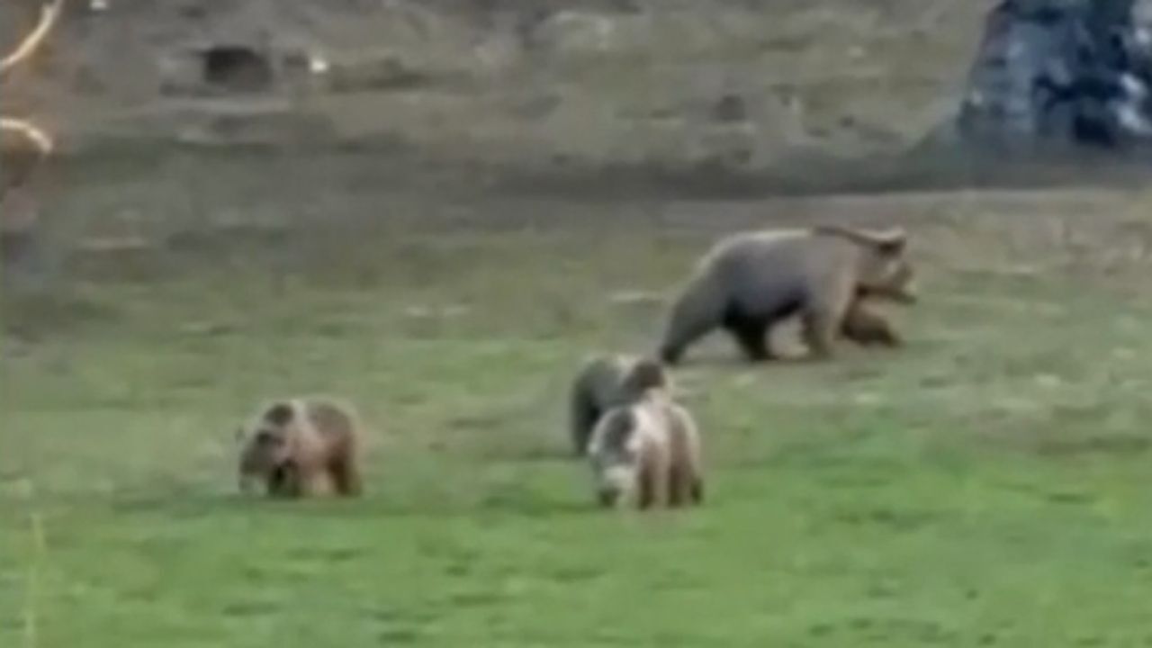 Yozgat'ın Akdağmadeni ilçesinde, bir bozayı ve üç yavrusu doğal ortamlarında görüntülendi. Nadir rastlanan bu anlar, Başçatak köyü sakinlerinden biri tarafından cep telefonu kamerasıyla kaydedildi.