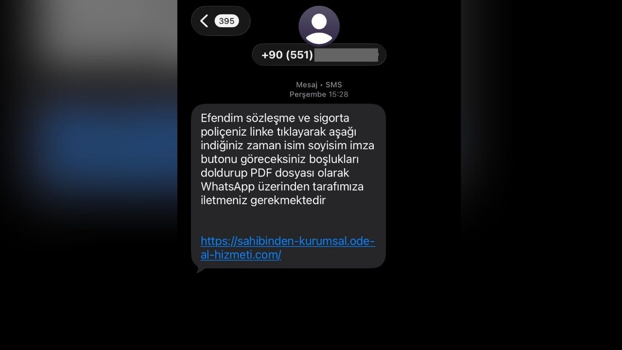 “Efendim sözleşme ve sigorta poliçeniz linke tıklayarak aşağı indiğiniz zaman isim soyisim imza butonu göreceksiniz. Boşlukları doldurup PDF dosyası olarak WhatsApp üzerinden tarafımıza iletmeniz gerekmektedir.”