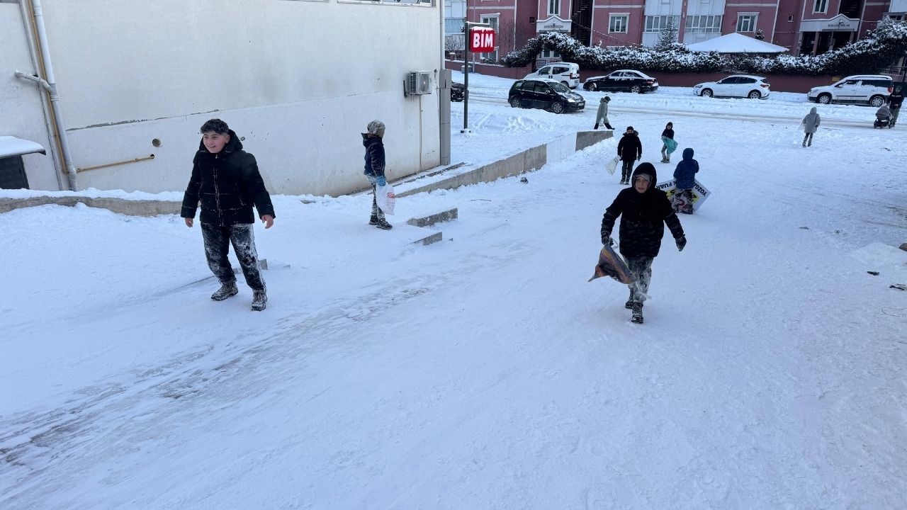 Kar tatilini fırsata çeviren çocuklar, poşet ve tepsilerle yokuşlardan kayarak kışın tadını çıkardı. Şehir genelinde etkili olan kar yağışının ardından okulların tatil edilmesiyle birlikte mahalle aralarındaki yokuşlar çocukların buluşma noktası oldu. Ellerinde naylon poşetler, muşambalar ve tepsilerle yokuşlardan kayan çocuklar, kartopu oynayarak doyasıya eğlendi.