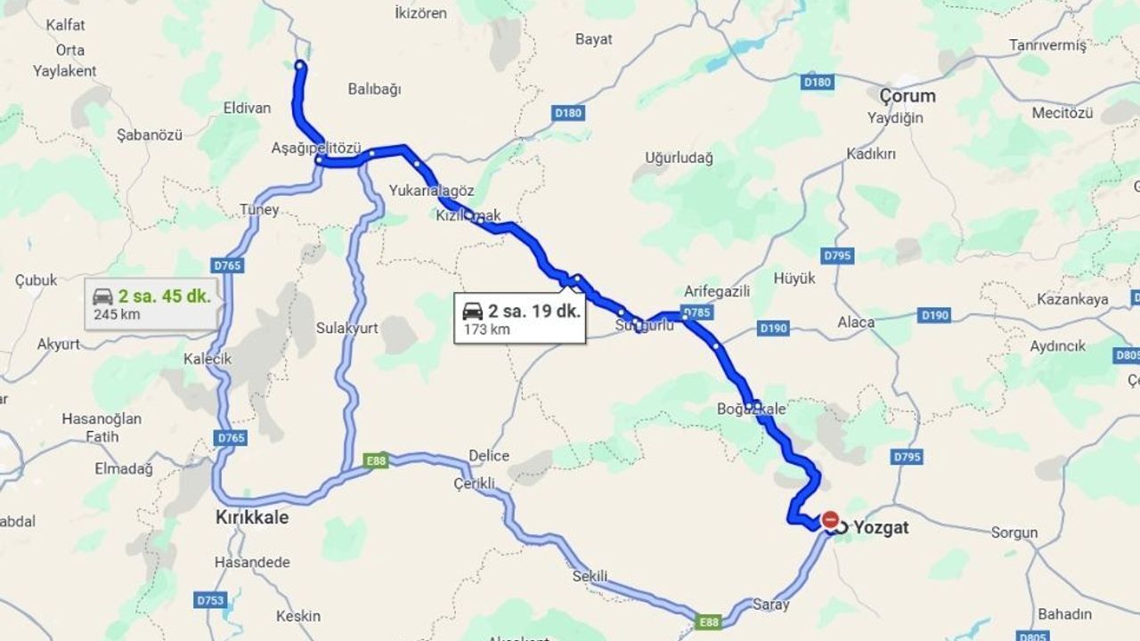 Yozgat’tan Çankırı’ya gitmek için farklı güzergahlar olsa da en güvenli ve rahat yol şu şekilde: