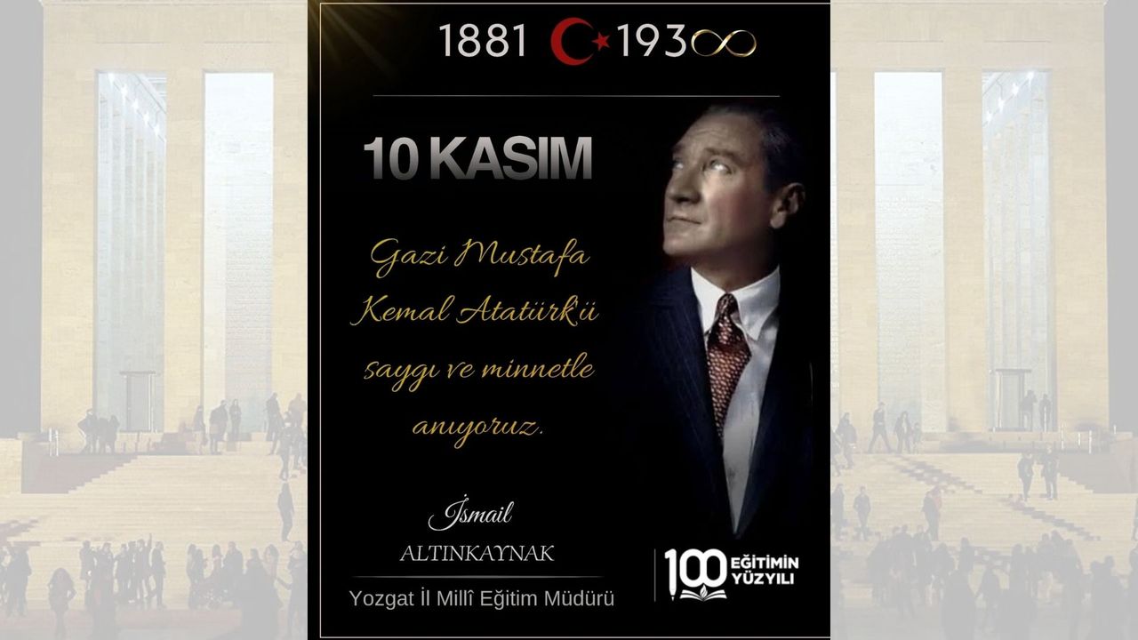 Yozgat İl Milli Eğitim Müdürlüğü, 10 Kasım Atatürk’ü Anma Günü kapsamında bir mesaj yayımlayarak Türkiye Cumhuriyeti’nin kurucusu Gazi Mustafa Kemal Atatürk’e duyulan minnet ve saygıyı anma töreni aracılığıyla tekrar dile getirdi.