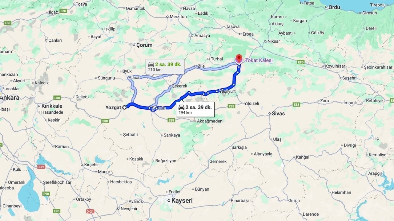 - Eğer Yozgat’tan Tokat’a gidiliyorsa, devlet kara yolları ve ana rotalar tercih edildiğinde güvenlik ve konfor açısından avantaj sağlanır.