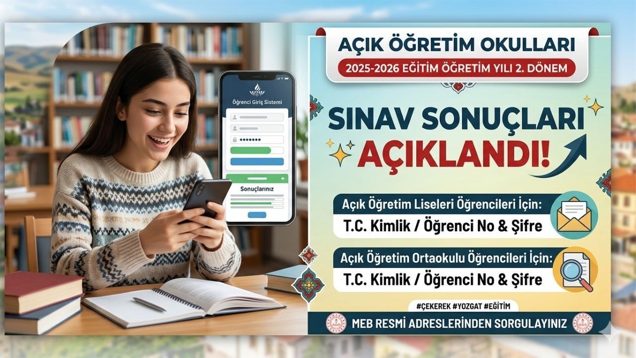 2025-2026 Eğitim Öğretim Yılı 2. Dönem Açık Öğretim Okulları sınav sonuçları resmen ilan edildi.