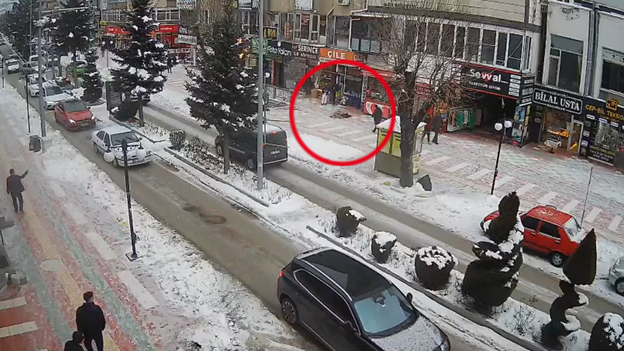 Lise Caddesi’nde yaşanan düşme anı, Yozgat Hakimiyet gazetesinin kameralarına anbean yansıdı. Canlı olarak kaydedilen görüntüler, buzlanmanın ne kadar tehlikeli olabileceğini gözler önüne serdi.