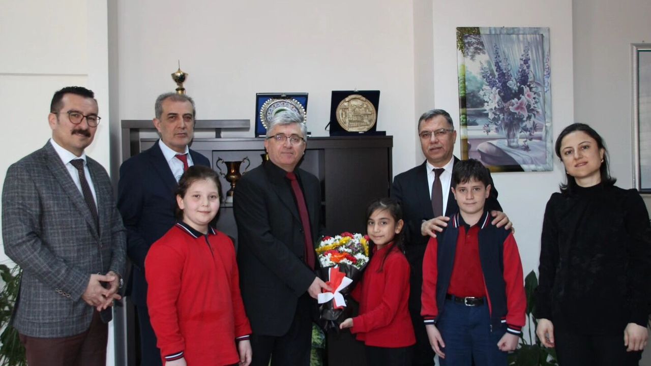 Sağlık Haftası münasebetiyle, İl Milli Eğitim Müdürü İsmail Altınkaynak'ın eşlik ettiği ziyarette, Atatürk İlkokulu öğrencileri İl Sağlık Müdürü Dr. Mehmet Akif Karaarslan'a çiçek takdim ederek tüm sağlık çalışanları adına teşekkürlerini sundular. Öğrencilerin bu anlamlı jestinden duyduğu memnuniyeti ifade eden Karaarslan, minik misafirleriyle tek tek ilgilenerek onlara eğitim ve sağlık dolu bir gelecek diledi.