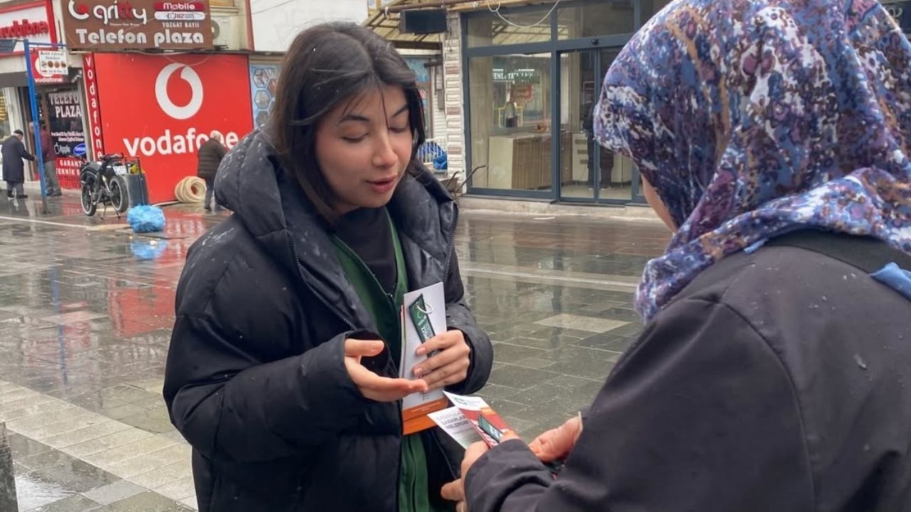 Genç Yeşilay gönüllüleri, camiden çıkan vatandaşlarla birebir iletişim kurdu. Yeşilay'ın çalışmaları ve YEDAM'ın sunduğu ücretsiz danışmanlık hizmetleri hakkında bilgi verildi.