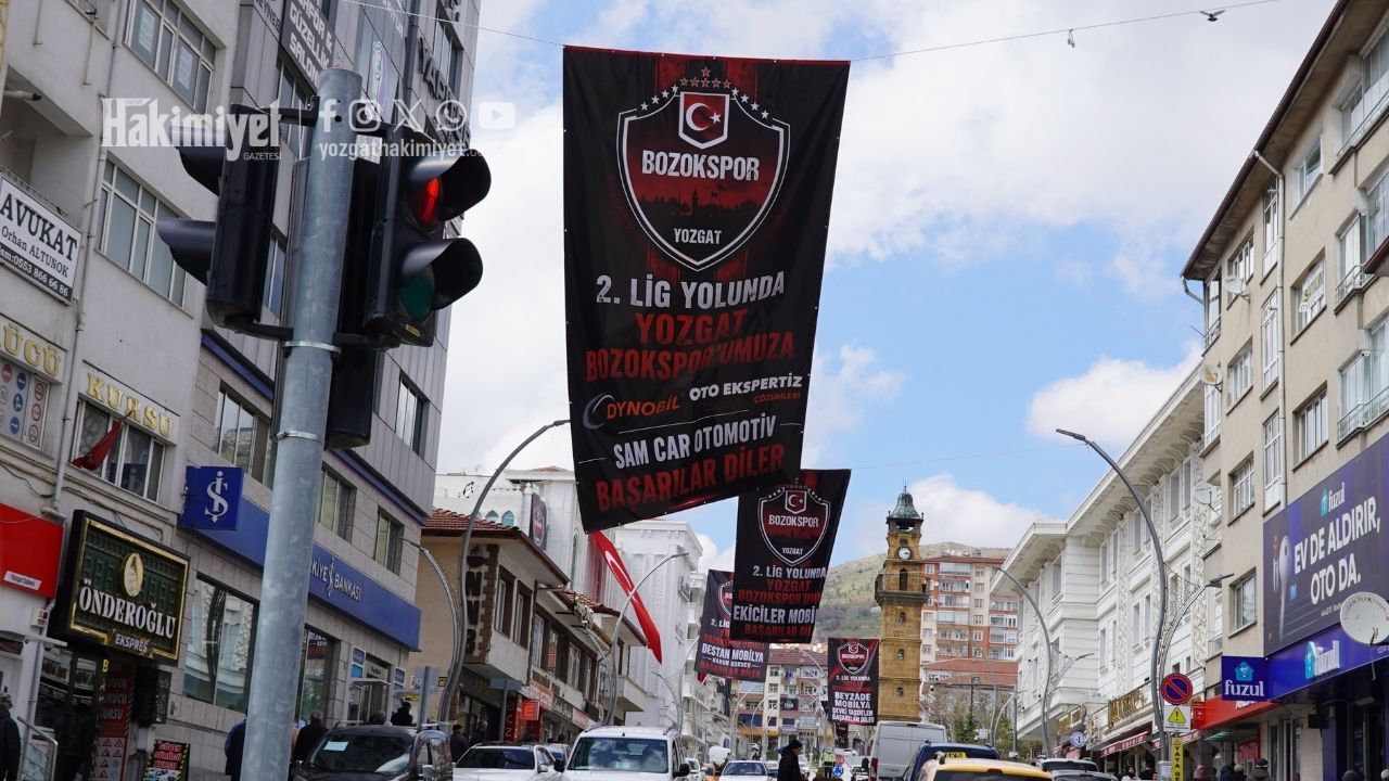 Yozgat Bozokspor’un play-off mücadelesi, sadece bir futbol karşılaşması olmanın ötesine geçti. Şehrin birçok noktasında hissedilen heyecan, esnafın girişimleriyle daha görünür hale geldi. Cadde ve sokaklara asılan pankartlar, vatandaşların ilgisini çekiyor. Küçük işletmelerden büyük dükkanlara kadar pek çok esnaf, “Yozgat Bozokspor yanındayız” mesajları verdi.