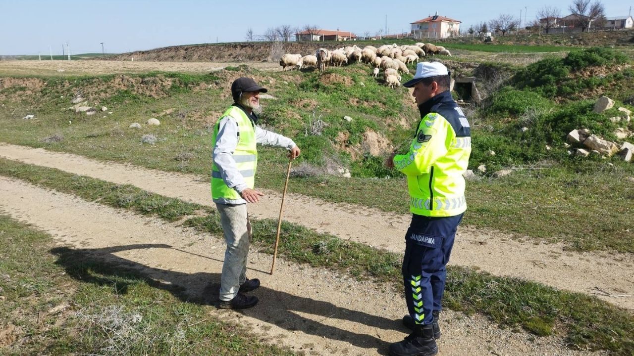 Merkez İlçe Jandarma Komutanlığı'na bağlı trafik jandarması ekipleri, "Reflektif Yelek Giy Görünür Ol" kampanyası kapsamında il ve köy yolları çevresinde faaliyet gösteren çobanlarla bir araya geldi.