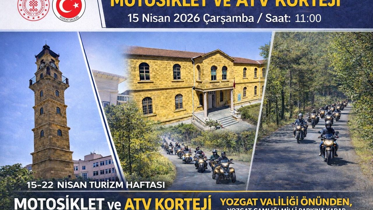 Yozgat İl Kültür ve Turizm Müdürlüğü, Turizm Haftası kutlamaları çerçevesinde motosiklet ve ATV'lerden oluşan renkli bir kortej etkinliği gerçekleştirecek. Etkinlik, 15 Nisan Çarşamba günü saat 11.00'de başlayacak.