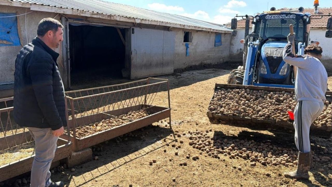 Yozgat’ın Boğazlıyan ilçesinde hayvancılık yapan üreticiler, artan yem fiyatlarına karşı alternatif yöntemlere yöneliyor. Depolarda kalan ve satış bulamayan patatesler, besiciler tarafından satın alınarak hayvan yemine ekleniyor.